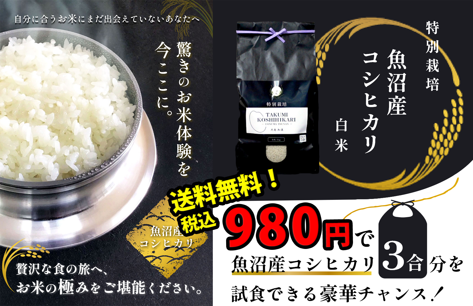 特別栽培 魚沼産コシヒカリ 白米 3合トライアルセット